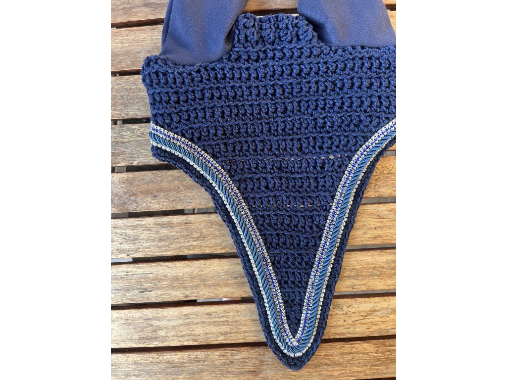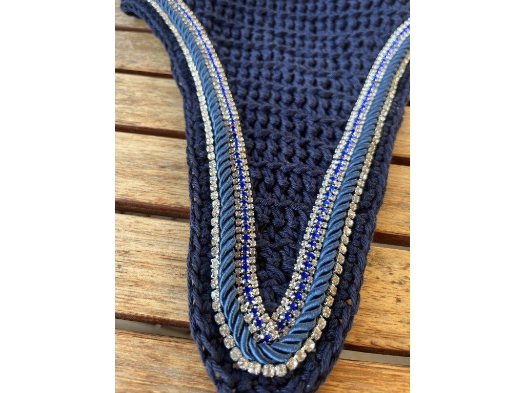 Prodloužená čabraka, ozdobená stříbrným kamínkovým modro-bílým řetízkem, krystalovým řetízkem řetízkem a modrou šňůrkou. Nakombinuj si barvy podle sebe! Nakombinuj si barvy podle sebe! Velikosti: XFULL, FULL, COB, PONY.