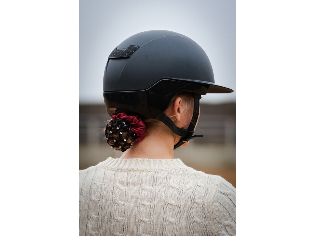 Elegantní saténová scrunchie se síťkou je ideálním doplňkem pro závody i slavnostní jezdecké příležitosti. Spojuje funkčnost, pevné držení účesu a luxusní vzhled, který perfektně doplní závodní outfit.