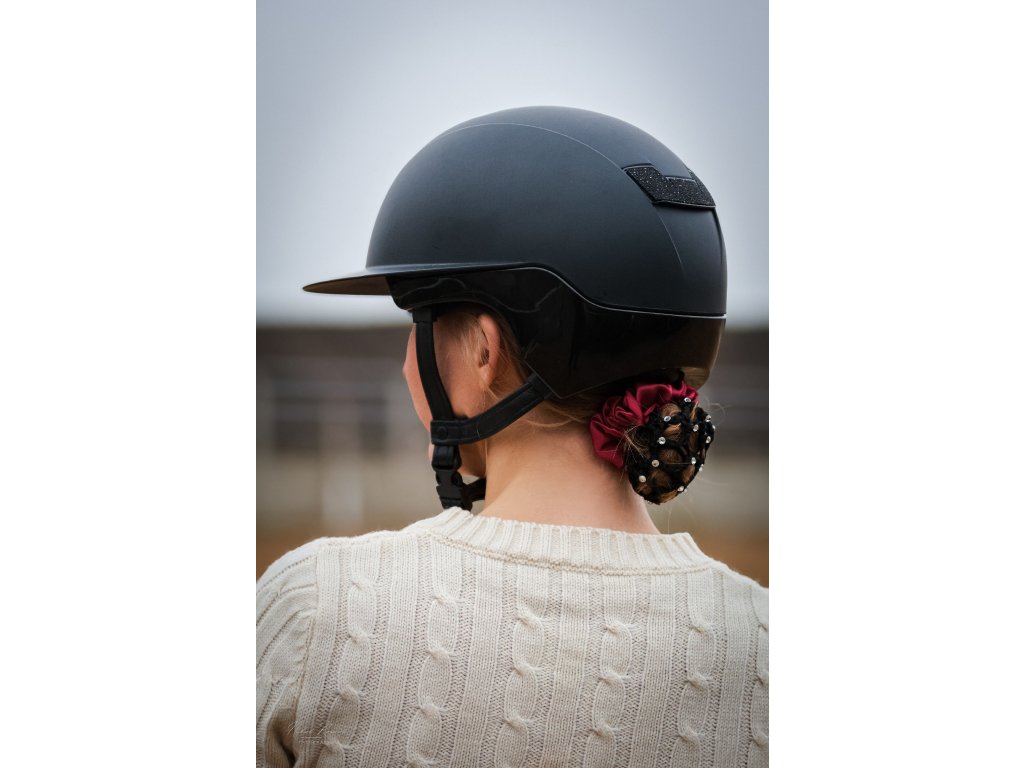 Vnitřní síťka s jemnými kamínky udrží vlasy bezpečně na místě po celý výkon, zatímco saténový lem dodává účesu čistý a reprezentativní vzhled. Ideální pro drdol při drezuře i hobby závodech.